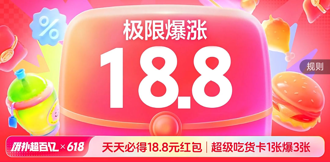 这是饿了么的红包,可以进行暴涨,必得18.8元,值得领取。